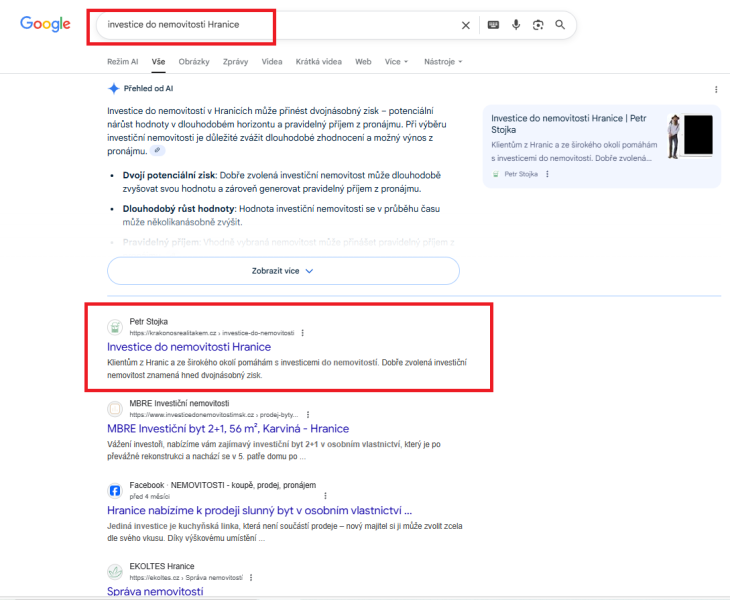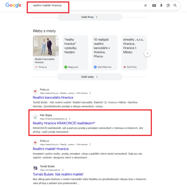 Pro klienta, který v Hranicích působí jako realitní makléř, jsme optimalizovali online prezentaci pro lepší dohledatelnost na internetu.