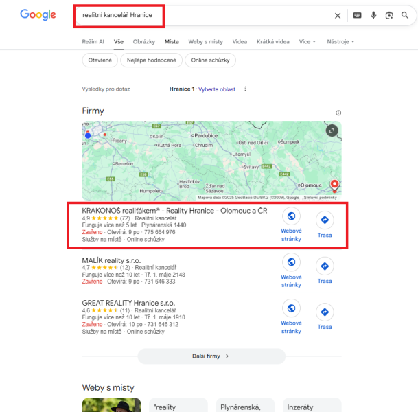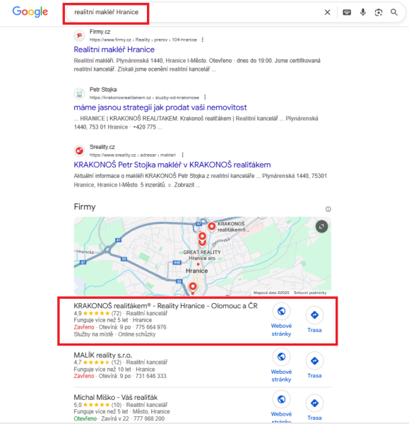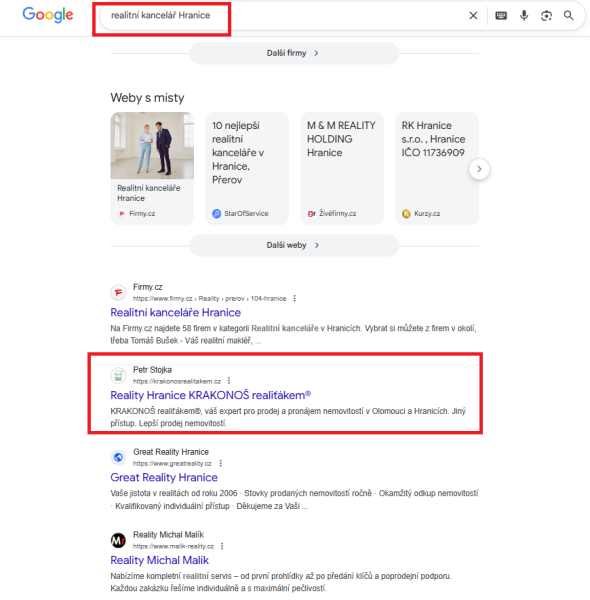 Klientovi jsme nabídli také optimalizaci jeho webu: Reality Hranice KRAKONOŠ realiťákem®, aby byl lépe dohledatelný na internetu.